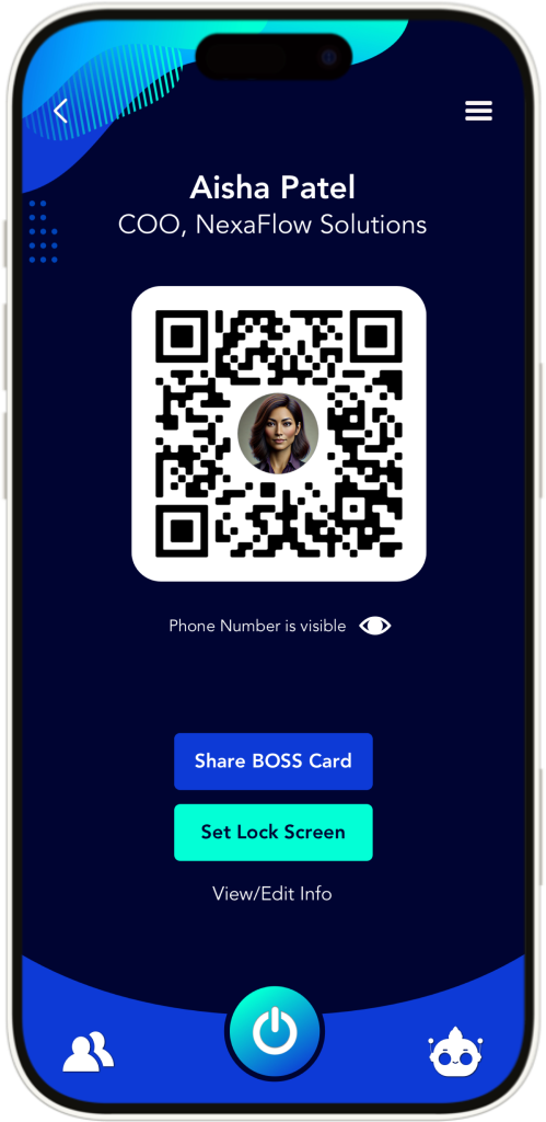 A Virtual Business Card or “BOSS Card” is a great way to share your preferred information when networking with others. Have your new contact scan your BOSS Card’s QR code to connect—whether they’re using the BOSS.Tech app or not.